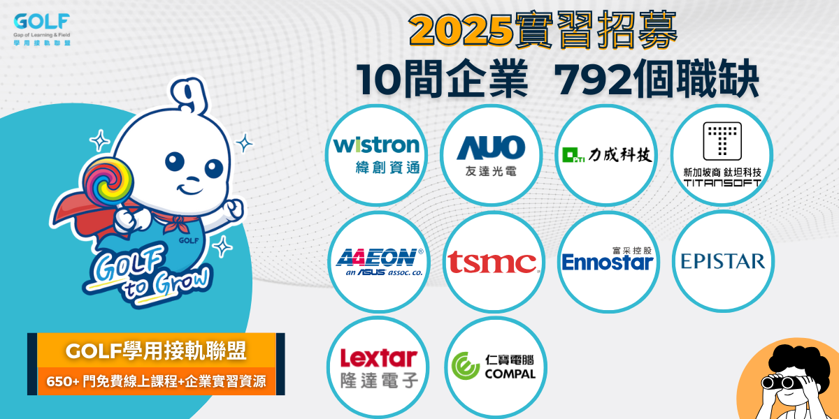 同學們!還在等實習媒合機會嗎?GOLF 學用接軌聯盟為同學們準備好了!